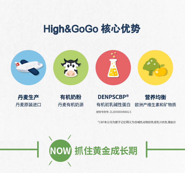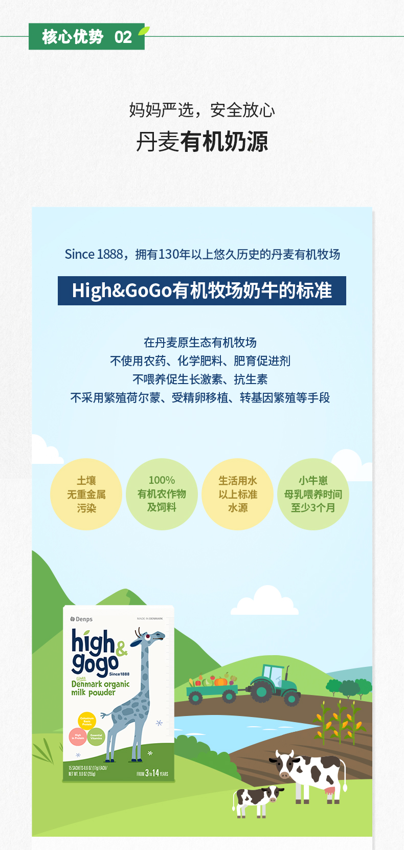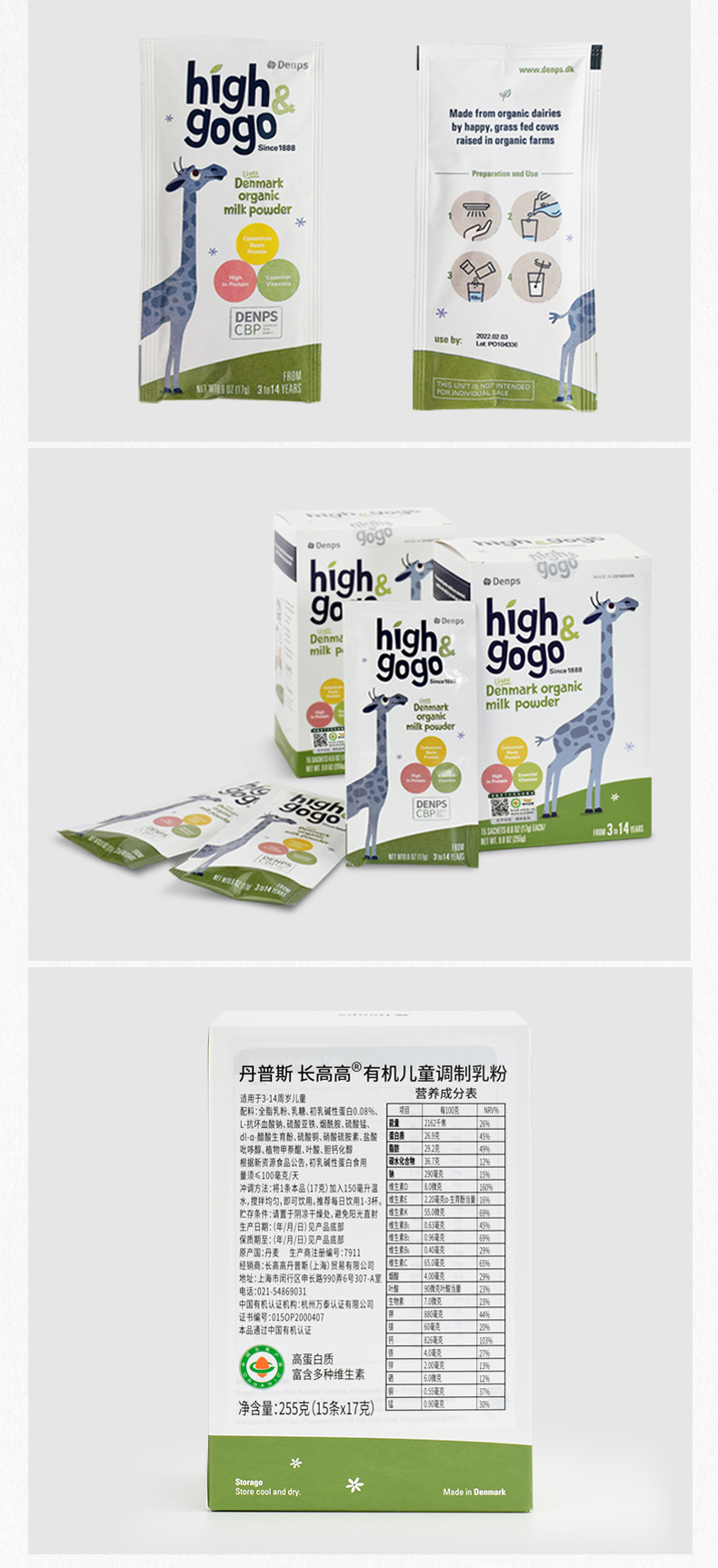 Denps丹普斯進口high&gogo長高高兒童學生成長有機奶粉5盒裝