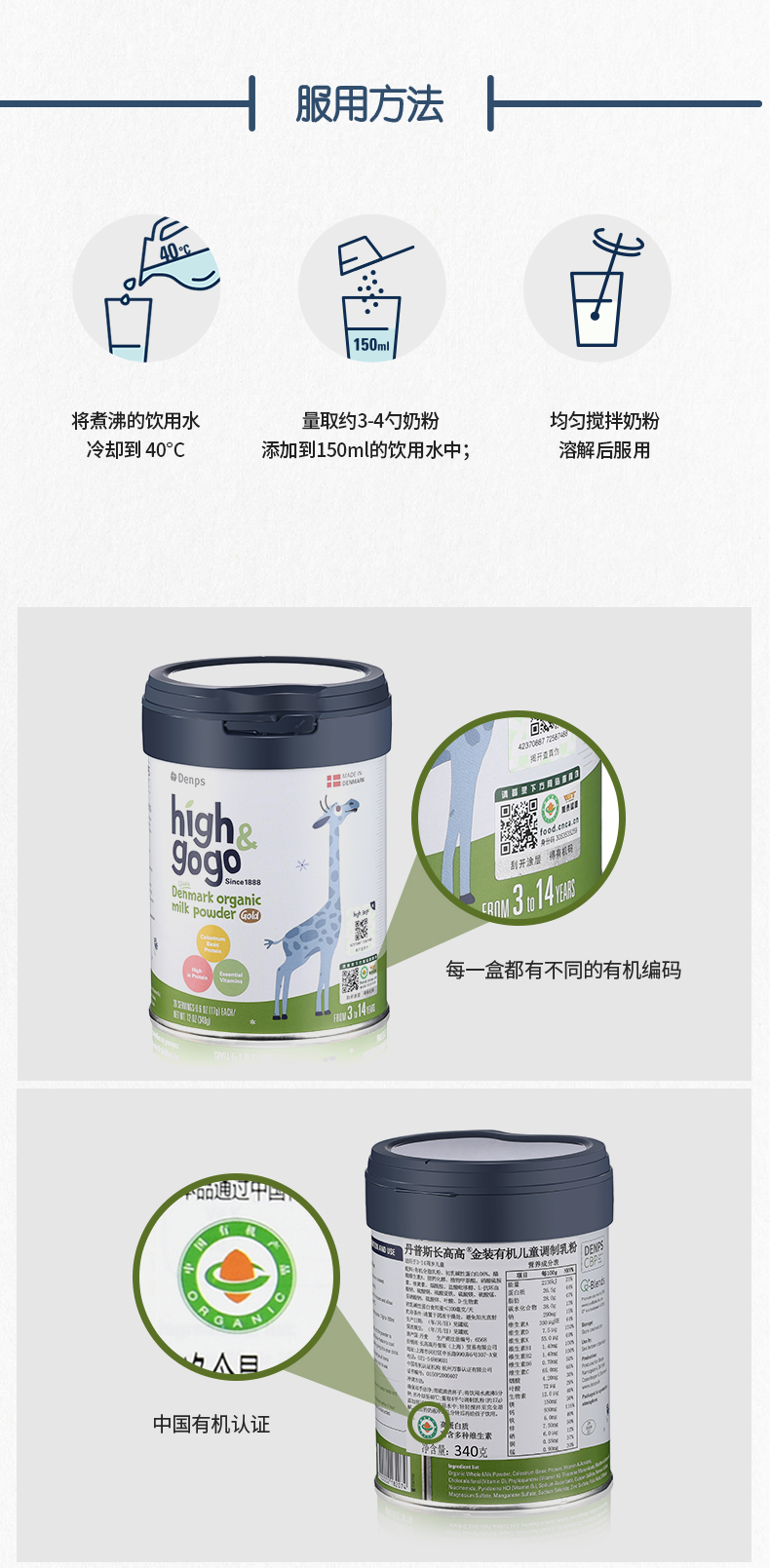 Denps Highgogo丹麥原裝進(jìn)口有機(jī)兒童成長牛奶粉1盒裝 2.0新品