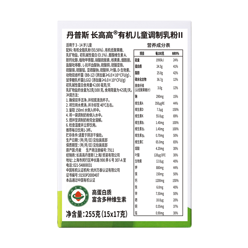 上一篇: 丹麥Denps丹普斯high&gogo兒童有機成長奶粉家庭裝(小藍罐)*5罐